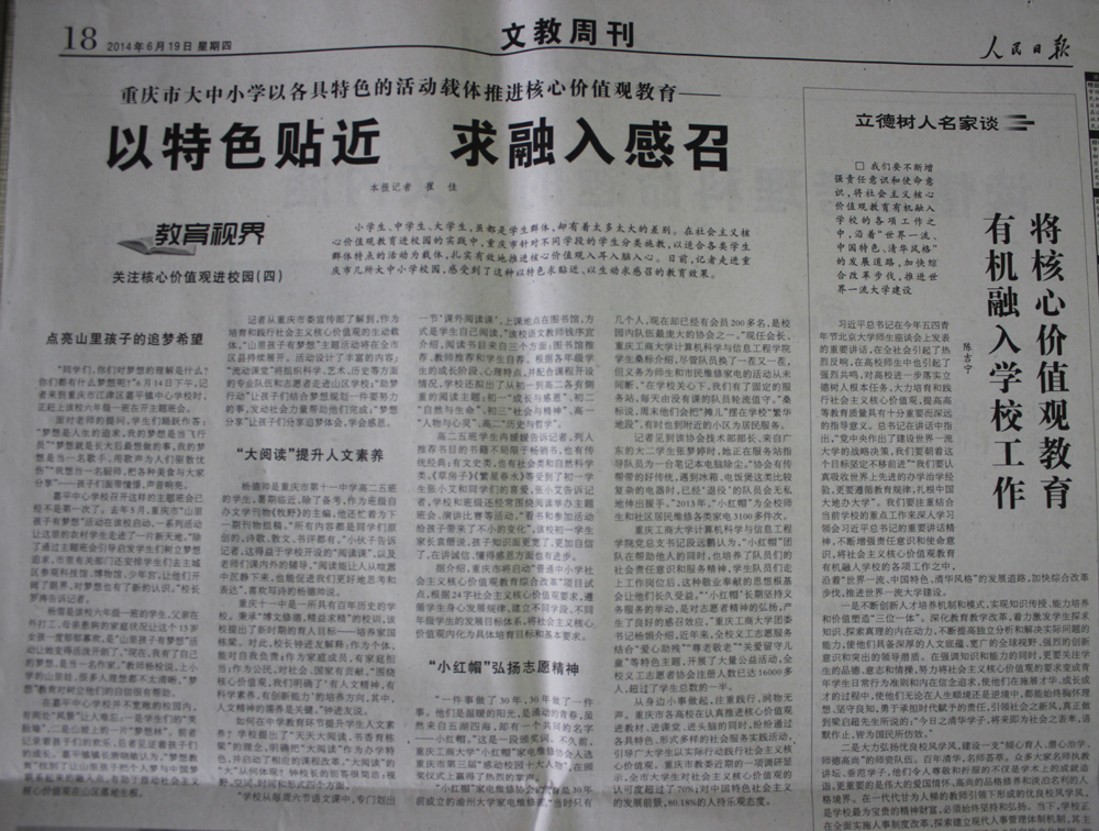 2014年6月13日上午,《人民日报》记者到yh533388银河官网香樟林服务站,对小红帽家电维修协会的成员进行现场。2014年6月19日,《人民日报》第18版报道了小红帽30年如一日志愿服务的感人事迹。