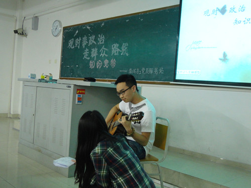 为了提高同学们对知识百科的了解,以及对关于时事政治的关注,对党章历史的深刻认识,弘扬中华民族积极进取的精神,营造良好的学习氛围,2014年4月25日晚上19:00,计信学院南16B2党员服务站在博智楼07304教室成功举办了以“观时事政治,走群众路线”为主题的知识竞赛活动。南16B2党员服务站指导老师邵磊、南8党员服务站指导老师张静老师、南8党员服务站站长吴希、南16B2楼管会副楼长王彩慧以及所有参赛的同学和观众参加了活动。