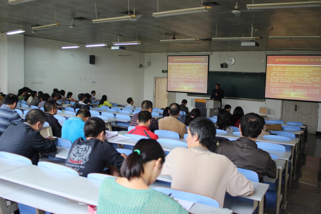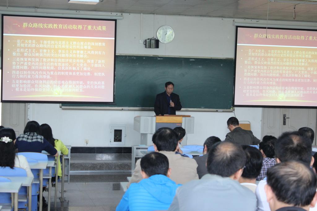 段书记首先和老师们一起学习了过去一年来党的群众路线实践教育活动的新经验及取得的新成果,希望广大教职工党员自觉地、坚定地贯彻党的群众路线,坚决抵制“四风”,把党的优良传统应用到教学科研中来。