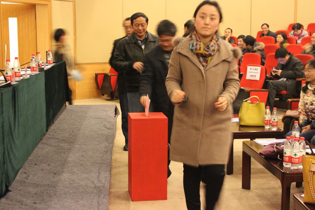 大会选举阶段,在总监票人罗棻老师的支持下,全体正式代表依次排队,庄严投票,选举学院教代会、工会和经费审查委员会委员。