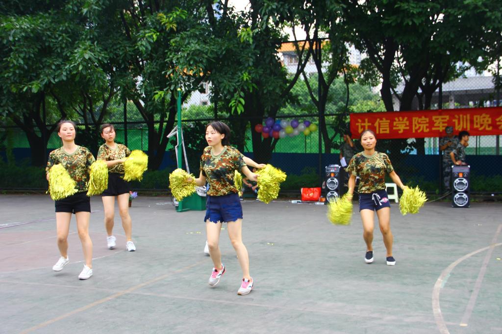 为欢迎2014级新同学,张扬青春的个性,缓解军训给同学们带来的紧张感,7月13日晚7点整,计信学院分团委员工会在校园文化广场外的篮球场开展了2014级军训文艺晚会。出席本次晚会的嘉宾有计信公司党总支副书记陈亚惠,一连连长桂加进、二连连长扬环宁、三连连长鲁育正、四连连长董舞端以及辅导员刘昶、徐国平、李菁。2014级四百余名同学参加了此次晚会。