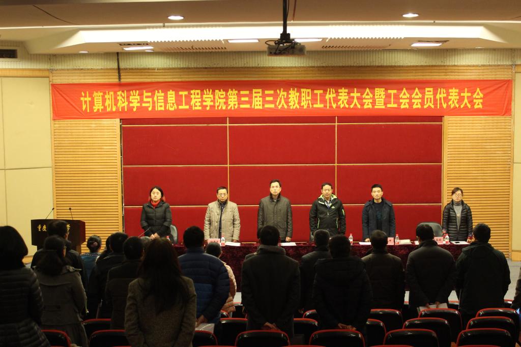 1月11日下午,计信学院第三届三次教职工代表大会暨工会会员代表大会在博智楼7200报告厅胜利召开。代表们听取并审议了经理工作报告、学院经费报告、工会工作报告、工会收支情况报告。学校工会常务副主席曾林,全体院领导,大会正式代表、列席代表等120余人出席了会议。