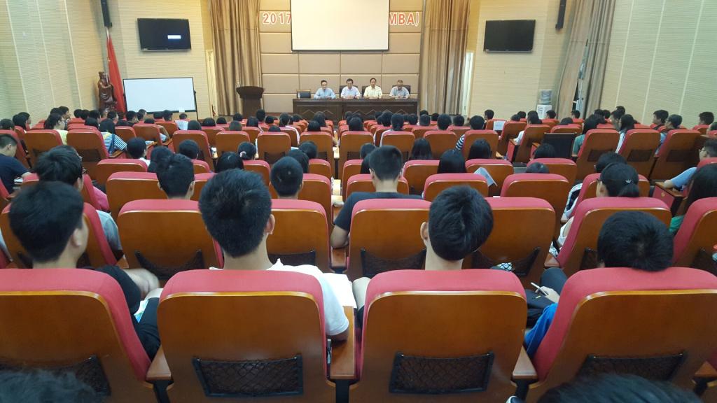 9月21日上午9点,计信学院在兰花湖片区MBA国际学术报告厅召开2017级新生见面会,计信学院分党委书记段远鹏、经理何希平、副经理胡卫军、教务刘跃洪老师、2017级辅导员徐秀慧老师、黄亚果老师以及423名2017级新生参加了大会。见面会由胡卫军副经理主持。