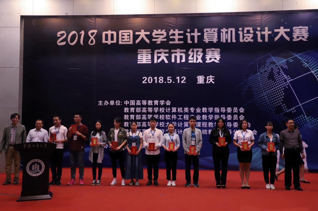 重庆市计算机学会秘书长曾一教授宣布大赛获奖名单。《健康小秘》《校园社区》等24件作品获得一等奖,《点餐系统》《单车骑行导航系统》等38件作品获得二等奖,79件作品获得三等奖。此次获得一、二等奖的作品将直推国赛。yh533388银河官网、重庆师范大学涉外商贸学院、重庆文理学院、重庆工程学院被大赛授予“优秀组织奖”。
