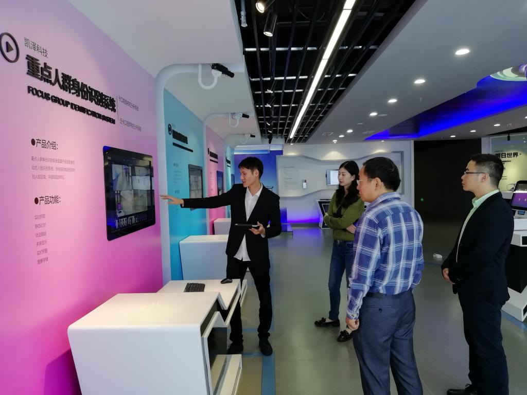 座谈交流会后,在凯泽公司李辉副董事长、吴军副董事长的陪同下,学院领导一行参观了凯泽科技展示馆,对方技术专家现场演示了人脸识别、人数统计、物体与应用场景识别等核心技术应用到安全、教育、医疗、交通、互联网等领域的过程,令考察组一行对人工智能和大数据的前沿技术及应用有了更直观、深刻的认识。