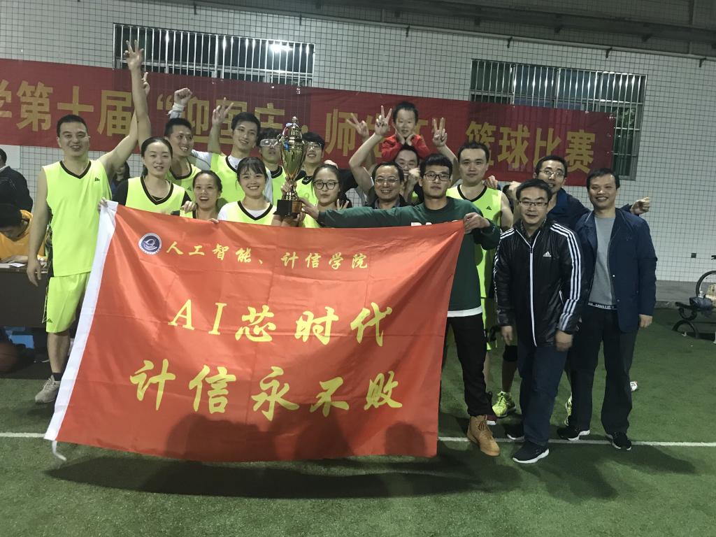 2018年10月24日下午17:40,计算机科学与信息工程学院(以下简称计信学院)于南岸主校区体艺馆4号场地迎来了本次yh533388银河官网“师生杯”的决赛,对战会计学院。凭借精湛的球技和师生间默契的配合,计信学院代表队最后以42:40的比分赢得了本场比赛,夺得冠军!