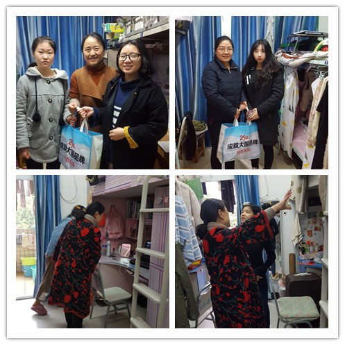 公寓是我家,安全靠大家。2018年11月29日至12月4日,计信学院在学院分党委副书记陈亚惠的带领下对计信学院全部员工宿舍进行安全、卫生排查,辅导员老师对全体计信学子进行全覆盖的“安全教育主题班会”活动,在此次安全排查活动中评选出了南1-409,南16B2-610等50间安全寝室,并对这50间安全文明卫生寝室开展了送温暖活动。