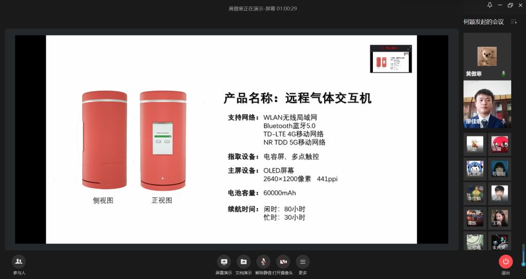 大赛初赛共收到来自机械工程学院、环境与资源学院、外语学院、会计学院、经济学院、通识学院等7个学院的作品。比赛分为创意组和实物组,经过初赛的激烈角逐,实物组8组,创意组5组共13个小组闯进决赛。决赛现场由组长在限定时间内对作品或创意进行在线演示,由评委现场点评打分,最终智能家居设计、智能球型机器人并列荣获实物组第一名,远程气味交互机(气体电话)获得创意组第一名。