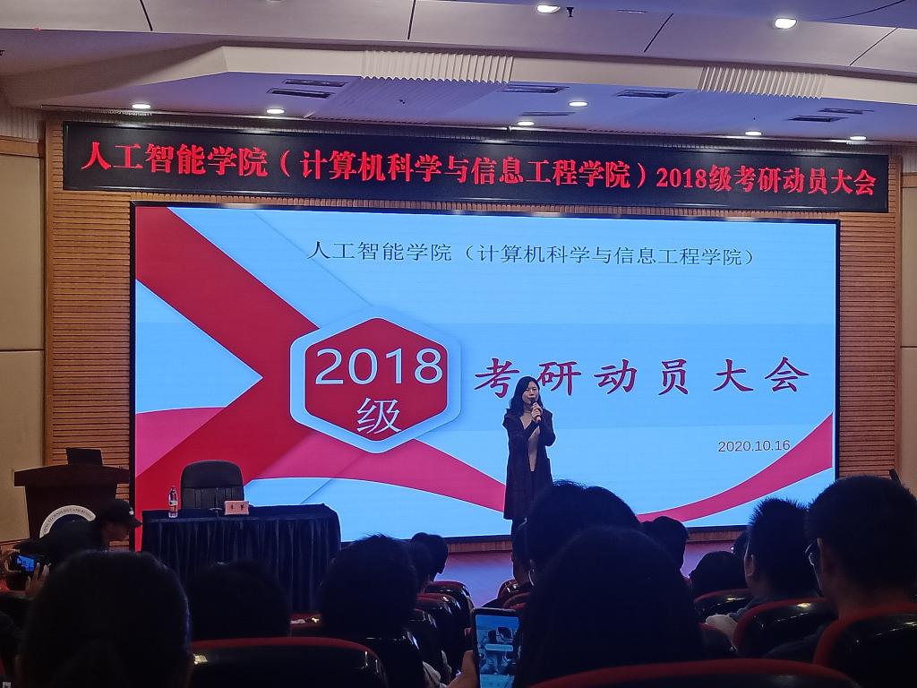 为激励2018级同学努力学习,明确考研形势,yh533388银河(计算机科学与信息工程学院)于2020年10月16日晚7:00在7200学术报告厅举办了2018级考研动员大会。外语学院副教授陈辉荣、18级辅导员李菁和部分18级员工参加了线下大会,其余员工通过企业微信直播观看了会议。