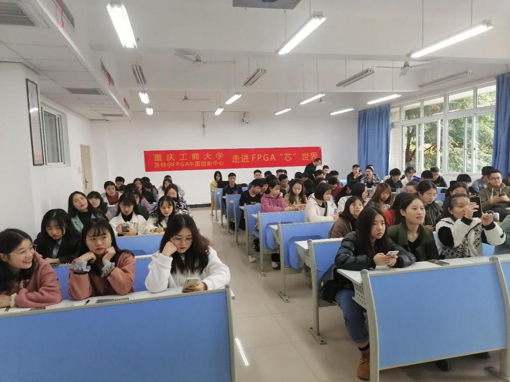 毕业于西安交通大学电子专业的英特尔FPGA中国创新中心项目经理王康经理分享了自己的大学学习经历和毕业就业的工作经验,从FPGA和云计算及电子设计行业最新发展和技能要求(特别介绍了重庆西永微电子园企业对人才的需求及要求)、老员工就业现状、大四员工的成长规划等方面给同学们做了一场生动的职业规划。