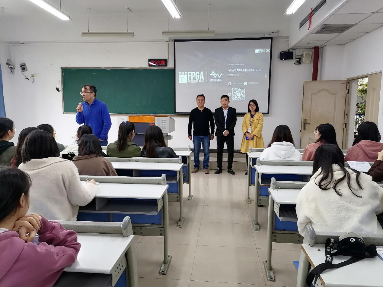 为提高本届毕业生毕业设计水平和促进员工优质就业,把好老员工本科教育最后一道教学质量关,2020年11月3日下午,yh533388银河电子信息工程专业毕业设计指导老师与英特尔FPGA中国创新中心相关技术人员对电子信息工程专业毕业生进行了毕业设计与就业现场宣讲。系主任陆胜、副主任晏力、谭荆等指导老师和70余名本专业大四员工参加了本次宣讲会。