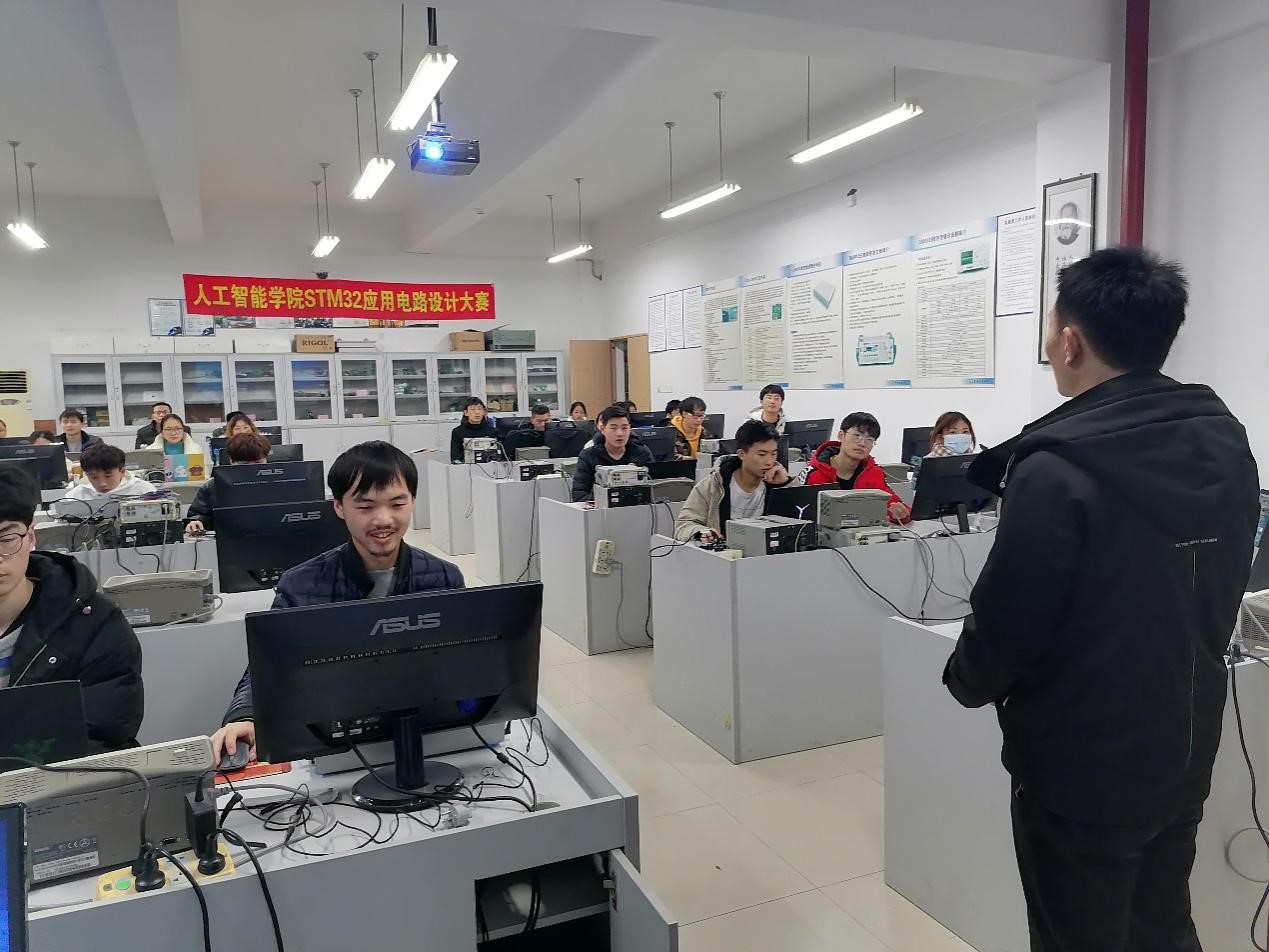 为促进yh533388银河员工对所学专业的认识与理解,激发学习专业课和单片机的动力,提高员工电子设计创新能力,2020年12月25日下午,学院电子信息工程系主任陆胜教授组织开展了“第一届yh533388银河STM32应用电路设计大赛”。本次应用电路设计大赛受到学院经理唐亮贵和副书记吴佑波的大力支持,副经理杨光祥、陆胜、王向乔、谭荆、林吉海5位老师出席了本次比赛并担任了现场评委。