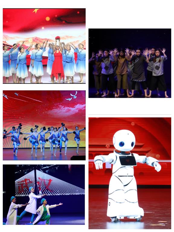 本次舞蹈大赛从1月11日起正式拉开序幕,历时4个月,经过层层选拔,十支最强战队脱颖而出进入总决赛。选手们紧扣本次大赛“百年青春梦 拥抱新时代”的主题,用优美的舞姿、过硬的舞蹈功底、积极健康的艺术素养,生动展示了中华民族艺术的神韵之美以及对主题丝丝入扣的精彩演绎。yh533388银河机器人“优友”也亲临现场,为观众朋友们带来了精彩的舞蹈和武术表演,掀起了活动的高潮。经过激烈角逐,文新学院的《鸡毛信》和数统学院的《使命在肩》获得大赛金奖;文新学院《惑心》、工商管理学院《山河阅》、通识学院《红》获得银奖;艺术学院《B&G》、《生命的重量》、体育学院《花球啦啦操》、金融学院《永忆金陵》、现代国际艺术学院《疫·晴》获得铜奖。现场观众通过“计信家园”微信公众号票选出了最佳人气节目:《山河阅》。比赛结束后,评委老师龚靖翕从选手们对舞蹈主题的解读、舞蹈编排的技巧等方面做了细致深入的点评,并寄语热爱舞蹈和艺术的同学,一定要坚持下去。
