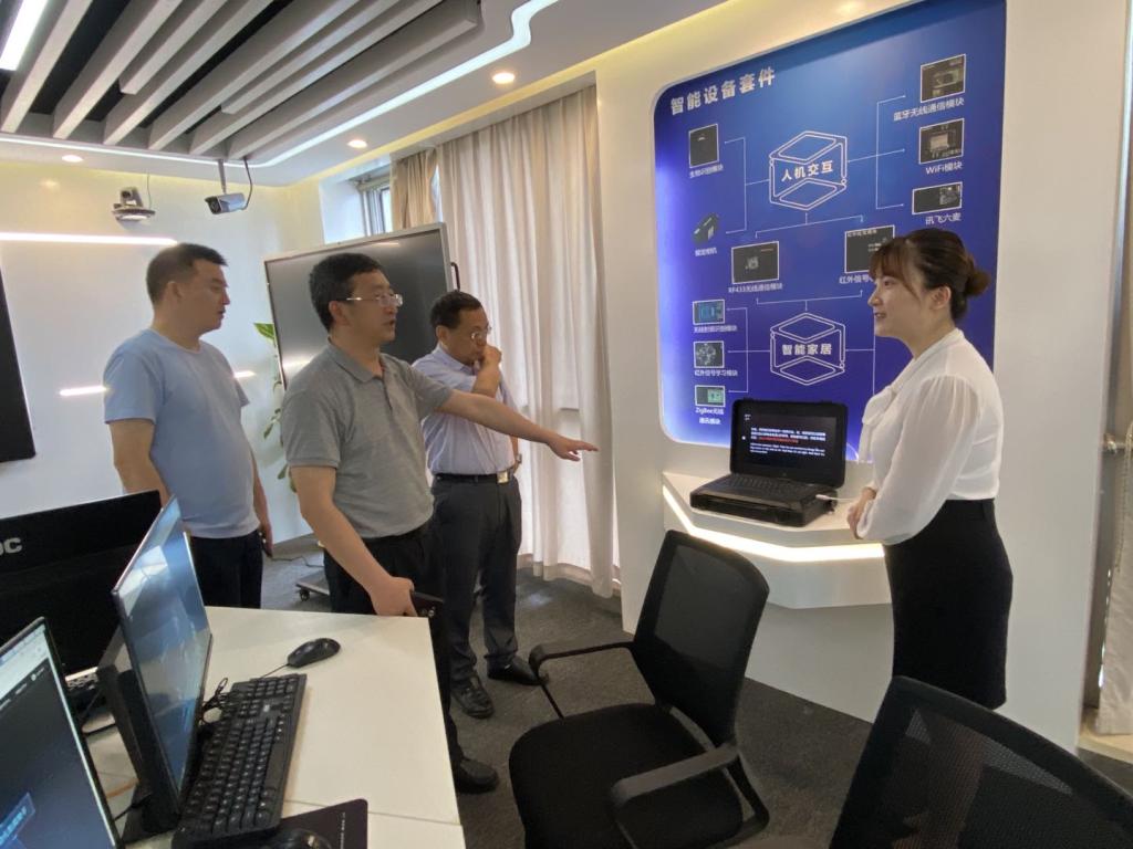 考察团一行在胡江院副总裁等的陪同下,参观了科大讯飞A5人工智能产品展厅、高端人工智能实验室、B3数据中心、智能教室及教育行业应用展示等,详细了解了科大讯飞的发展历程、业务布局、创新成果、实验平台,以及科大讯飞在构建“让机器能听会说、能理解会思考,用人工智能建设美好世界”的创新体系和产学研协同育人生态体系等方面取得的突出成就。