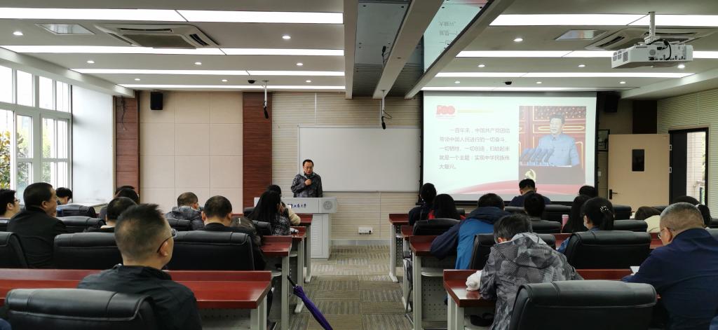 为深入学习贯彻习近平总书记“七一”重要讲话精神,进一步推动党史学习教育,10月15日下午,委书记何希平为全体教工党员讲授“深刻领悟习近平总书记“七一”重要讲话精神”专题党课。
