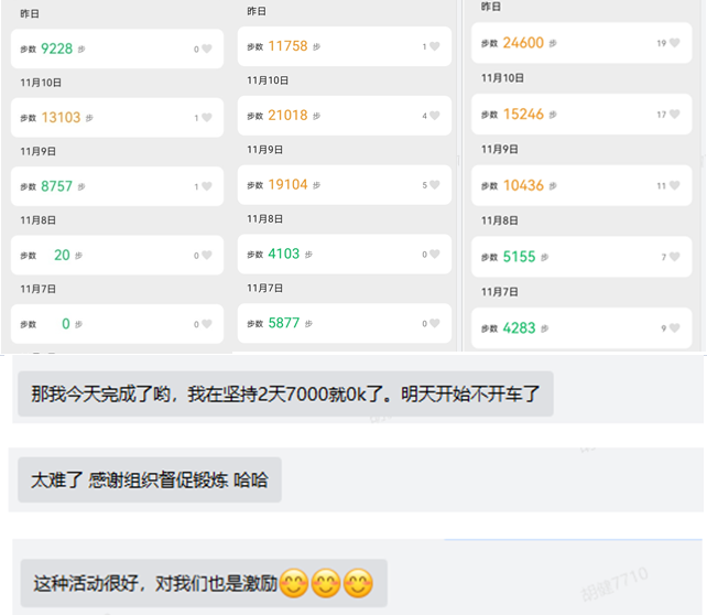 由于疫情原因,本次活动采取线上举行,要求参与活动的教职工,三天步数累计达到25000步及以上,或者三天步数均在7000步及以上。这次活动得到了学院教职工的积极参与,共有141名老师完成“云上”健步走活动。