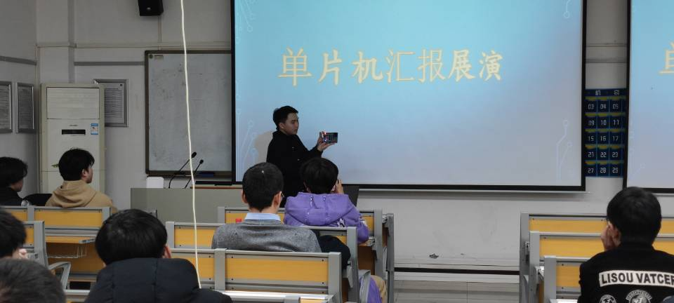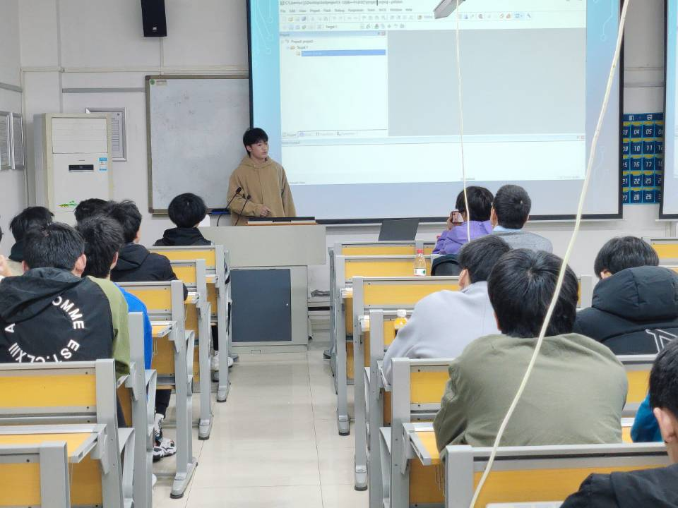 活动伊始,王层同学从单片机是什么到单片机嵌入式工程师就业前景和薪酬等方面进行介绍,展示了团队在寒假期间小组自主学习单片机并编程实现一首歌曲和操控可变档小风扇两个小项目,激发了同学们对单片机的学习兴趣。