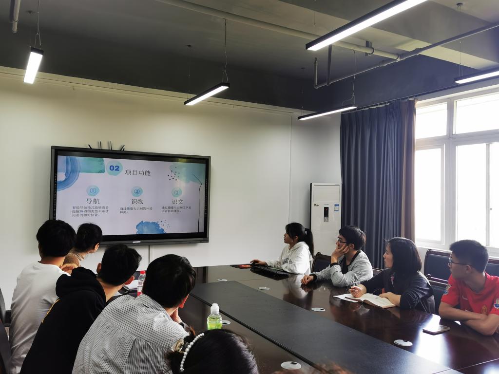 本次中期检查汇报以PPT讲演的形式进行,21个项目的负责人围绕项目研究背景、项目特点、研究内容、已完成工作及后续工作计划等内容,展示了项目实施情况。《基于复杂神经网络的航空企业付费选座算法设计》、《提供信息加密的AI多功能二维码生成器》、《智能保险理赔系统》等智能算法类的项目已大部分完成了模型的搭建、数据预处理及基础功能的检验;《基于STC8的智能运输矿车》、《基于图像识别的分拣机械臂》等硬件开发类已大部分完成原理设计、模块搭建,进入测试环节。通过项目汇报、展示,各项目小组也在观摩中相互学习、交流经验。