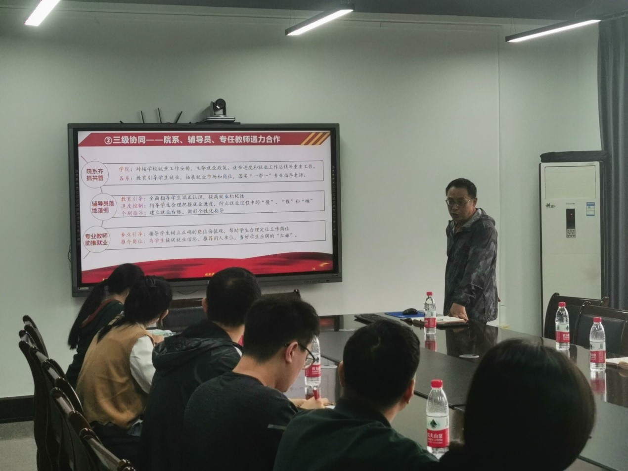 最后,何希平做了会议总结:全院每位老师都需要认识再提高,行动再到位。要各司其职,各尽其责,全面贯彻落实“三全”促就业创业的工作要求。希望全院上下共同努力,最终实现学院2023届毕业生的就业竞争力显著提升、就业水平和就业质量明显提高。