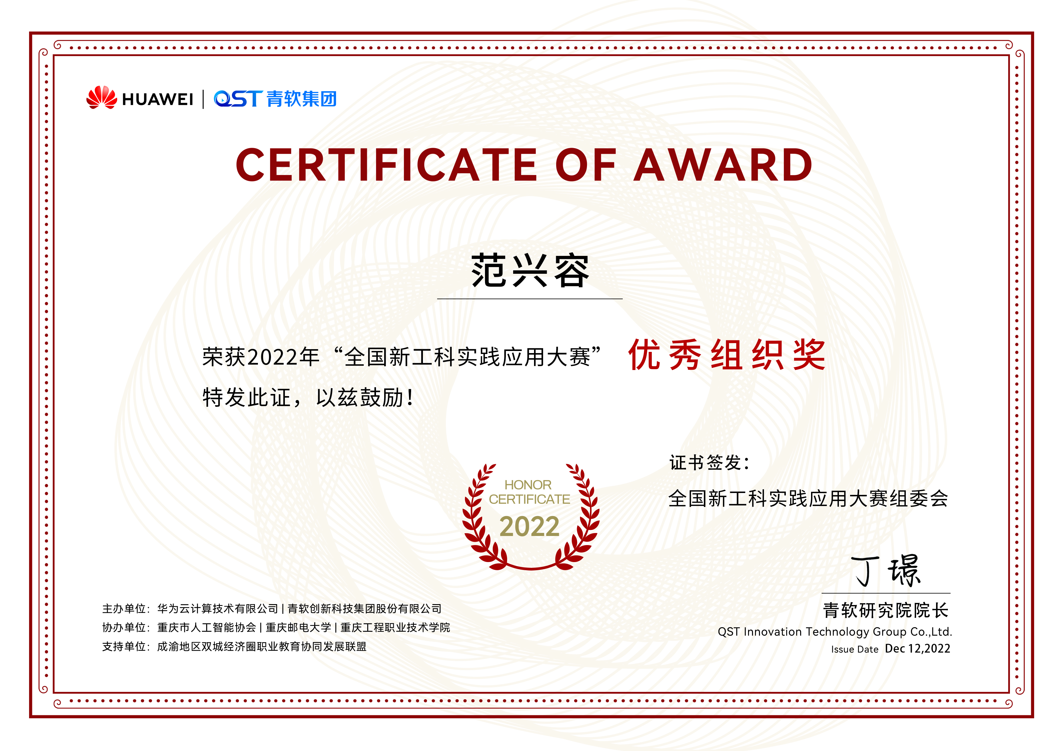 “2022年全国新工科实践应用大赛”是由重庆邮电大学、华为云计算技术有限公司和⻘软创 新科技集团股份有限公司联合举办,基于当下热⻔的人工智能领域,结合当前产业热点需求及 企业真实项目案例,通过“学、训、赛”的模式,帮助高校员工体验企业实际场景应用的开发、 提升软件编程技能、扩展知识体系、提高运用理论知识解决实际问题的能力。