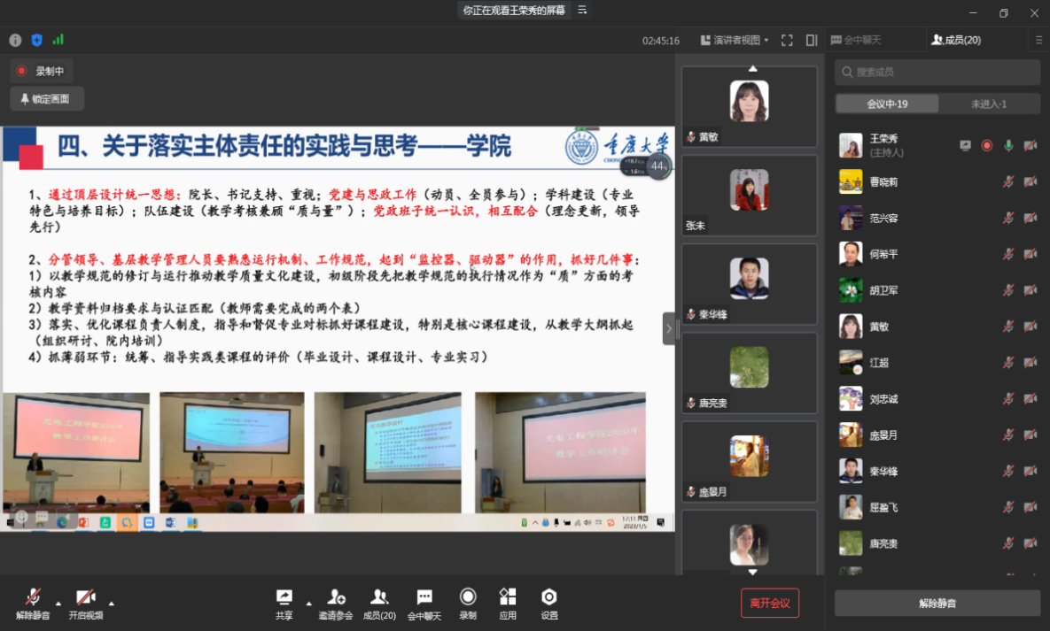 会上,杨光祥对自评报告总体进展进行了介绍,各部分主笔老师就撰写的内容以及撰写时所遇到的困难和问题进行了汇报,王荣秀主任分享了市内高校的一些相关经验和优秀案例,王主任表示测控专业目前边摸索边总结,努力打造成功之路。相信学院、系部勠力同心,稳扎稳打,一定会有收获。