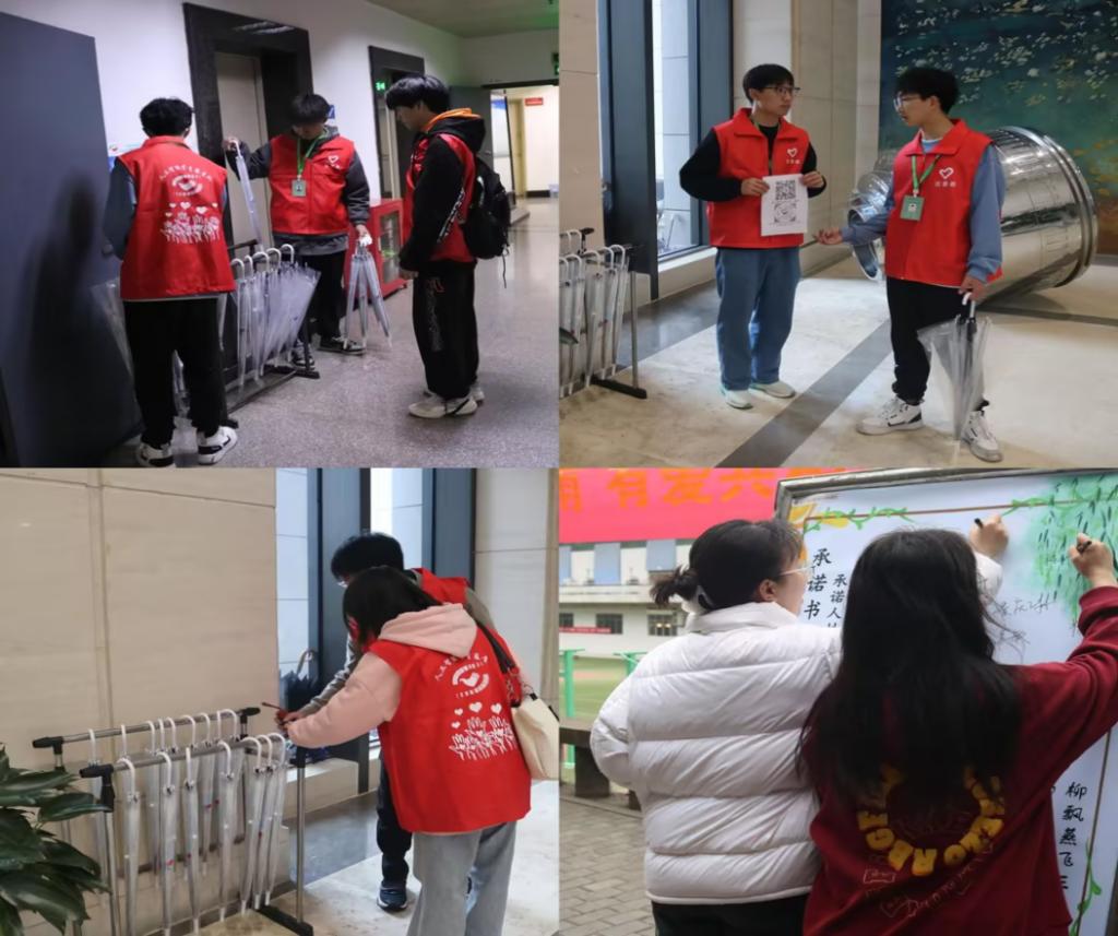 此次活动,不仅帮助同学们解决了“突遇雨天,忘带伞”的难题,体现了老员工自我管理和服务的能力,同时也提高了大家的诚信意识,营造了良好的文明校园氛围。