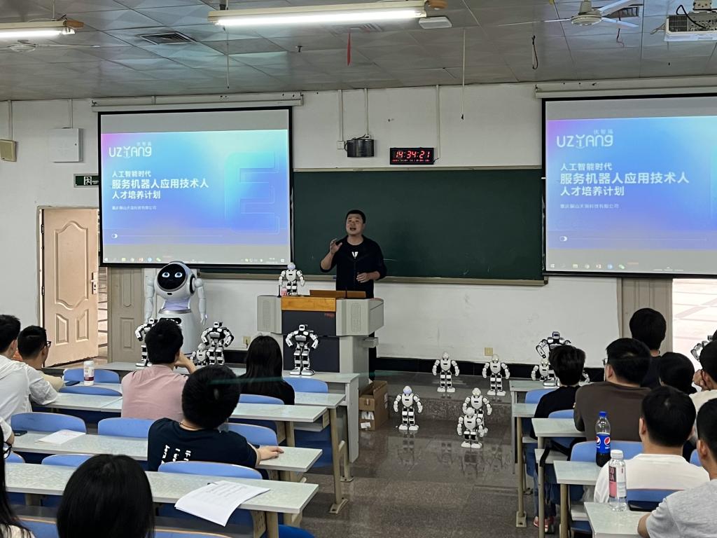 推进会的过程非常生动,现场气氛十分热烈,不仅向同学们清晰的讲述了当前智能服务机器人的分类及主要应用场景,智能服务机器人相关的主要就业岗位:ROS机器人调试员、机器人维护员、机器人装配技术员、机器人应用技术员及机器人维修工等岗位的市场需求、人才缺口、工作环境及薪资待遇等,现场智能服务机器人EBOT、“偃师”还组合编队进行了独特有趣的舞蹈表演。