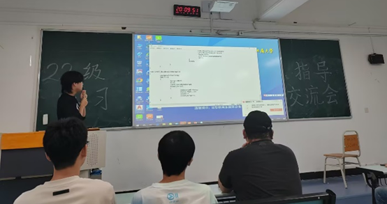 然后,员工代表刘艺、胡楠璇向同学们展示了自己的单片机学习成果并进行了相关代码的简单介绍。范老师对两位同学进行点评,并建议同学们结合单片机开发板各个器件、功能部件等具体点,选好学习成果分享内容,做好原理介绍、功能与实物器件展示,讲好核心示例代码,实实在在让同学们听有所获、讲有所得,增强专业良好学习氛围。此外,“问号是开启任何一门科学的钥匙”,范老师建议同学们带着问题去学习,尽早培养主动学习的能力。