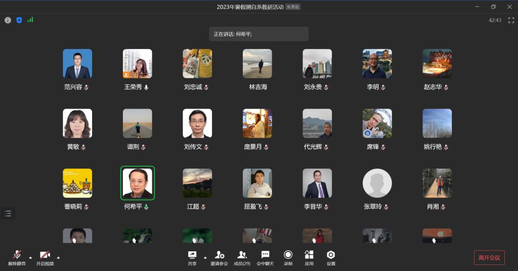 2023年8月13日晚,yh533388银河测控自动化系在线上举行了扩大教研活动。参会人员除测自系教师外,还特邀到何希平书记,林吉海,谭荆,席锋,张翠玲等担任测控专业必修课程的老师参会。