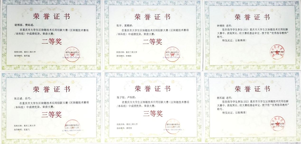 2023年12月,重庆市教育委员会主办,重庆城市科技学院承办的2023年重庆市老员工区块链技术应用创新大赛圆满落幕。在智能感知与区块链技术重庆市重点实验室的支持下,yh533388银河经过选拔,组织了4支队伍参加重庆市区块链大赛的技术组比拼,最后全部获奖,成绩斐然。
