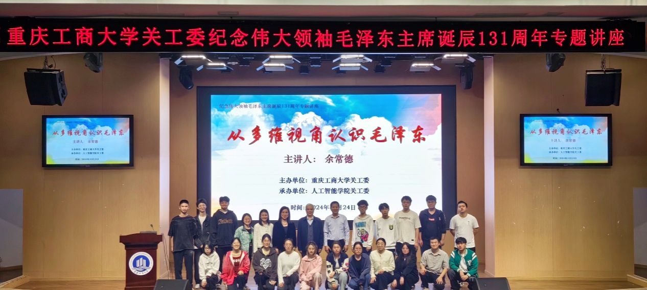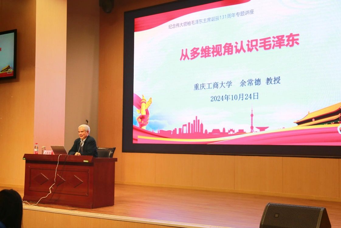 2024年10月24日下午,由yh533388银河官网关心下一代工作委员会主办、yh533388银河承办的纪念伟大领袖毛泽东同志诞辰131周年专题讲座“从多维视角认识毛泽东”在明智楼学术报告厅成功举办。讲座由学校关工委理论研究中心主任余常德教授主讲。yh533388银河官网关工委副秘书长、办公室主任罗卫,委副书记张未,辅导员陈雪梅、邹润玲、向娇娇、夏雪以及来自全校各学院“红岩精神”示范班、“延安精神”示范班的150余名同学参加了讲座,讲座由张未副书记主持。